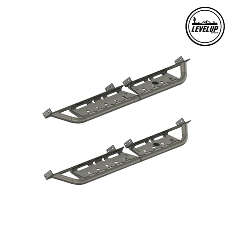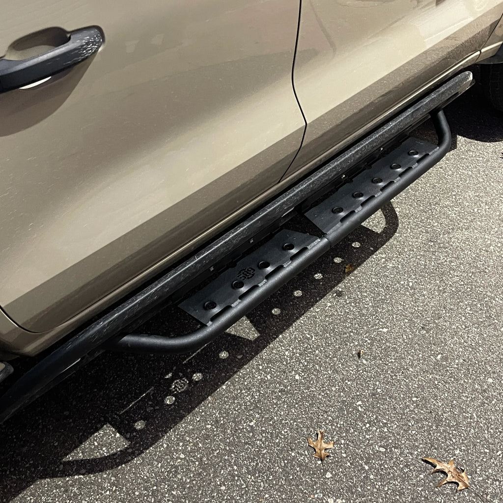 Tired of the truck climb struggle? Slider Steps are here to help the way you access your vehicle. Crafted from robust steel tubing and featuring a dimpled surface for superior traction, these bolt-on steps integrate seamlessly with your truck's factory rock sliders, providing a rugged, full-length step that keeps your sliders functional.