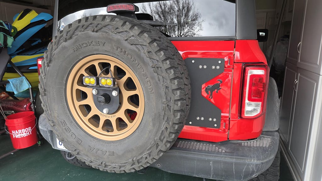 Made in the USA by Bronco owners, this spare tire support kit was designed to increase the strength of our tailgates by displacing some of the weight of spare tire load to the structural hinges. The extra support reduces creaks/squeaks/ and helps prevent any damage to the aluminum tailgate. Those who trail their Bronco often, or are utilizing heavier wheel/tire setups, will benefit from our system the most!