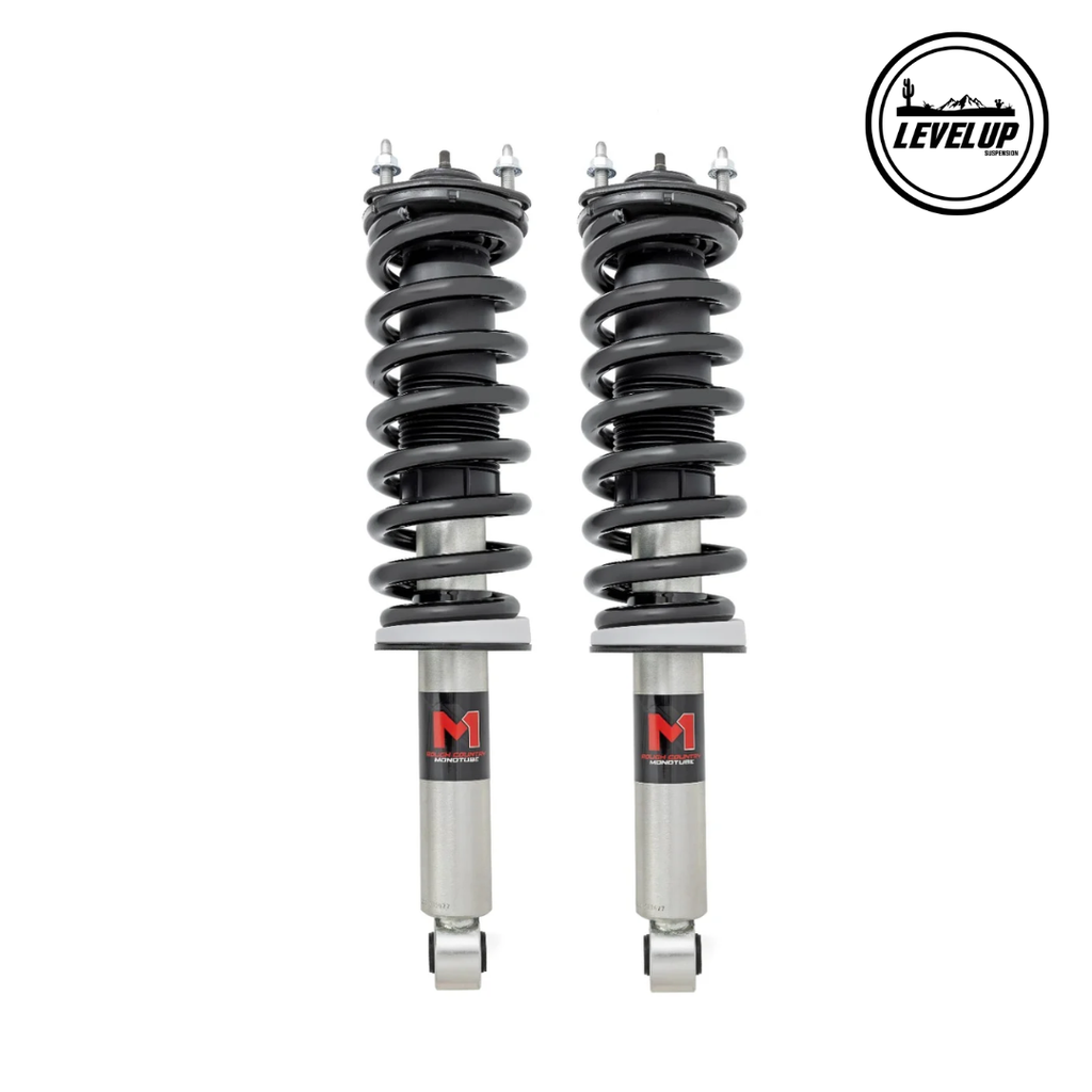 Improved Stance, Balance, and Handling. If you want to improve your vehicle's on-road performance and off-road capabilities, Rough Country's M1 Strut Leveling Kits are the way to go. Our M1 Leveling Struts help stabilize your vehicle's movements, enhancing control when you turn, brake, accelerate or ride over uneven road surfaces. As an adjustable ride height strut, these M1’s keep your suspension from overextending, providing a more consistent ride. Made for rugged off-road performance, our M1 monotube struts have a 46mm digressive piston for a more stable ride, preserving the smooth ride quality you need.